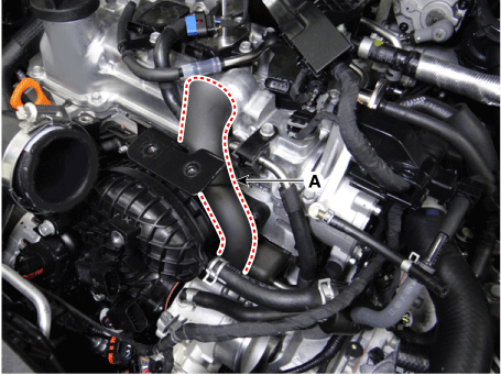 Отсоедините шланг принудительной вентиляции картера (PCV) (А).