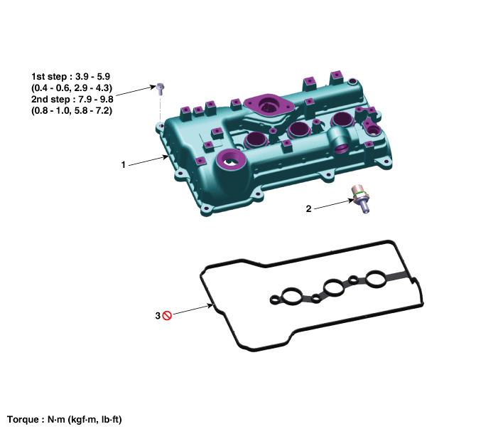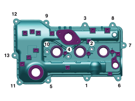 Установите болты крышки головки блока цилиндров следующим двухэтапным методом.