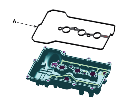 Снимите крышку головки блока цилиндров (А) с прокладкой.