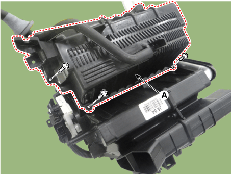 Снимите сердцевину испарителя (А) с блока отопителя.