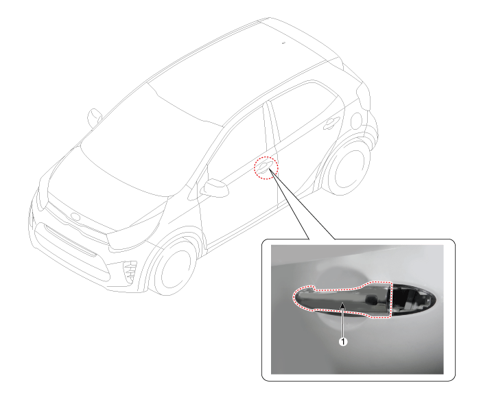 Снимите наружную ручку передней двери (А), сдвинув ее назад.
