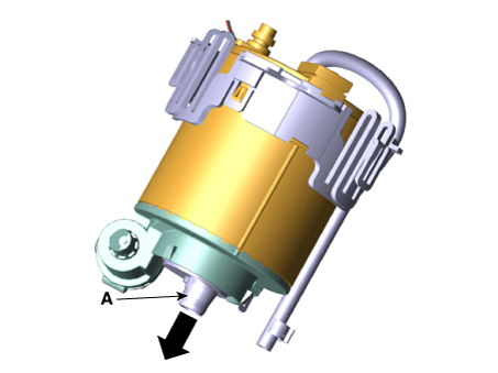 Нажмите на фиксирующий крюк (А) отверткой и снимите датчик уровня топлива в направлении стрелки.