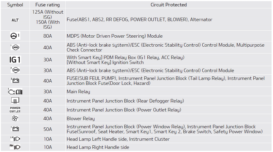 Панель предохранителей моторного отсека (Двигатель Kappa 1,0 л MPI (FFV))
