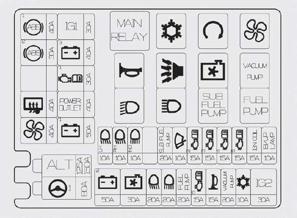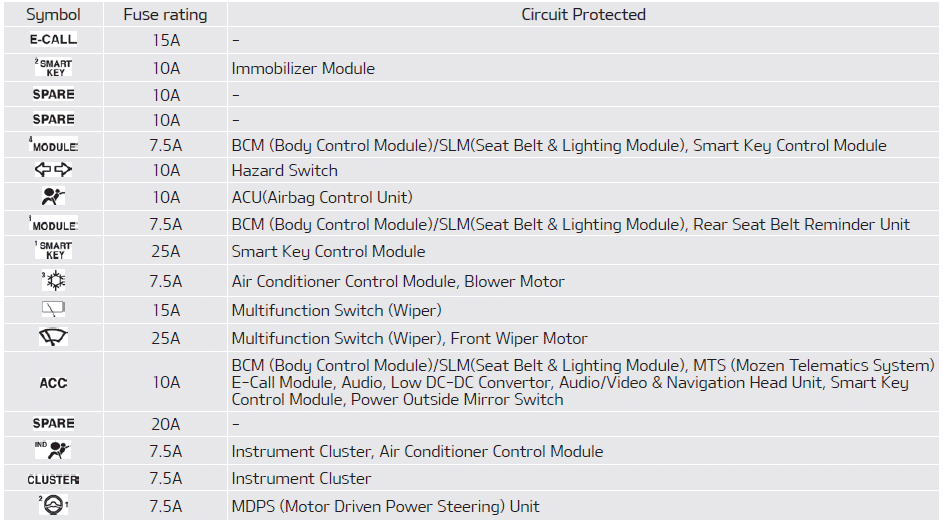 Панель предохранителей моторного отсека (Двигатель Kappa 1,0 л/1,2 л MPI (бензин))