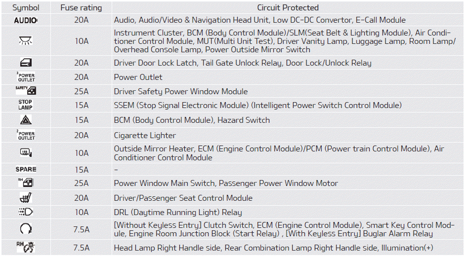 Не все описания панели предохранителей в этом руководство может быть применимо к вашему транспортное средство. Это точно на момент печать. При осмотре предохранителя панели в вашем автомобиле, см. табличка на панели предохранителей.