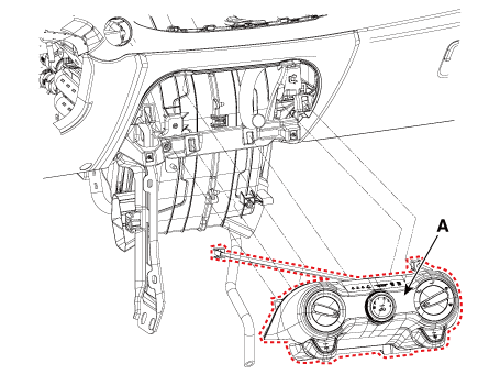 Ослабив крепежные винты, снимите блок управления кондиционером и отопителем (А).
