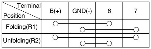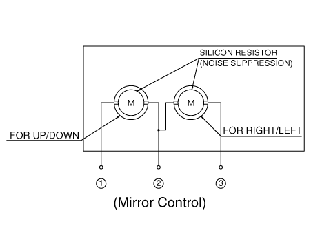 Подайте напряжение батареи на каждую клемму, как показано в таблице, и убедитесь, что зеркало работает правильно.