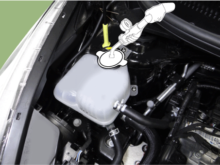 Подсоедините тестер к радиатору и подайте давление 93,16–122,58 кПа (0,95–1,25 кгс/см², 13,51–17,78 фунтов на кв. дюйм).
