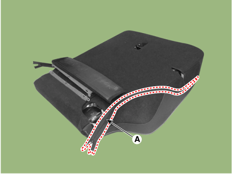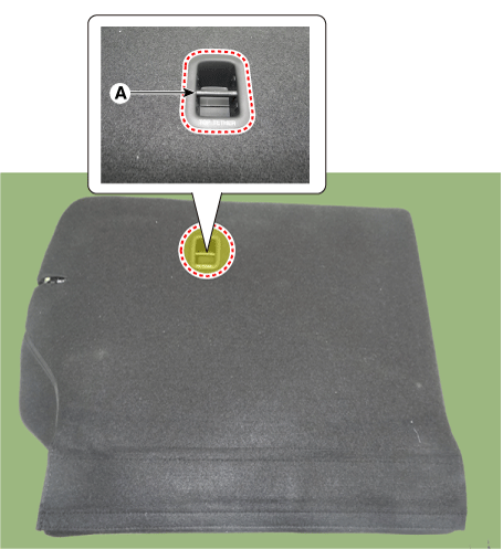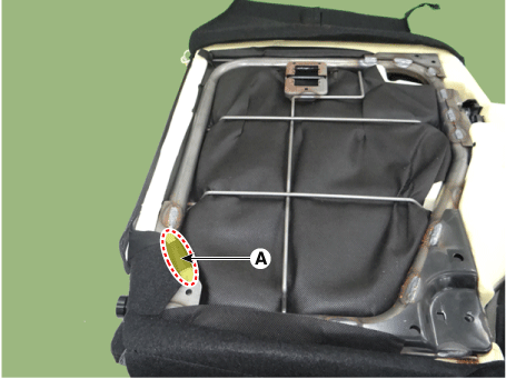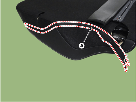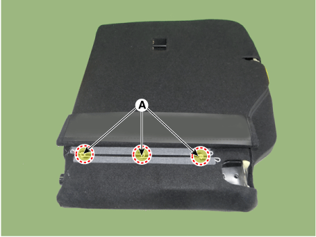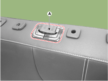 Отсоедините боковой крепежный крюк (А) обивки спинки заднего сиденья.