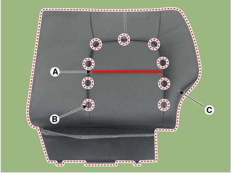 Снимите обивку спинки переднего сиденья (C), предварительно сняв липучку (A) и зажим (B).
