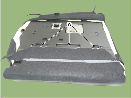Отсоедините монтажный крюк (А) обивки спинки заднего сиденья.