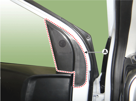 Снимите высокочастотный динамик (A) после ослабления крепежных винтов.