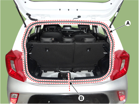 1. Ослабив крепежные болты петли задней двери (A), отрегулируйте заднюю дверь, перемещая ее вверх и вниз или вправо и влево.