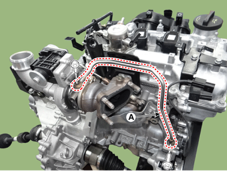 Отсоедините шланг дренажной трубы турбонагнетателя (А).