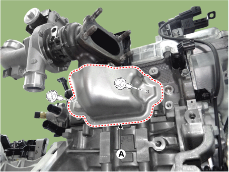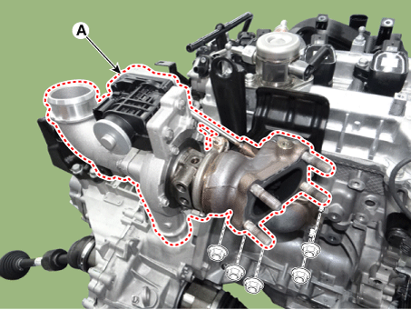 Снимите модуль турбоколлектора (А) с прокладкой.
