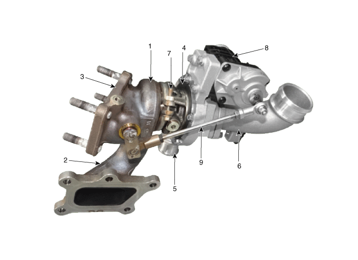 2. Вход в турбину 3. Выход из турбины 4. Корпус компрессора 5. Выход компрессора |