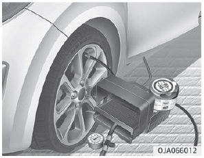 10. При включенном зажигании или двигателе положение кнопки старт/стоп: Включите компрессор и дайте ему бежать примерно 3 минуты, чтобы заливаем герметик. Инфляционное давление шины после заполнения не имеет значения и будет проверено/исправлено позже.