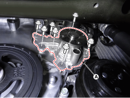 Проверьте на утечку охлаждающей жидкости. Если охлаждающая жидкость вытекает из отверстия, уплотнение повреждено. Замените узел насоса охлаждающей жидкости и прокладку.