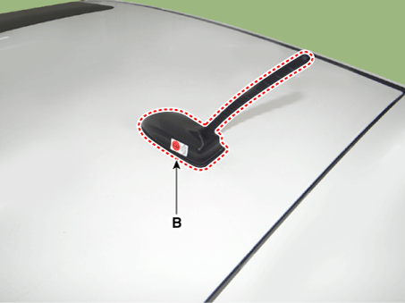 Снимите антенну на крыше (B), предварительно ослабив гайку (A).