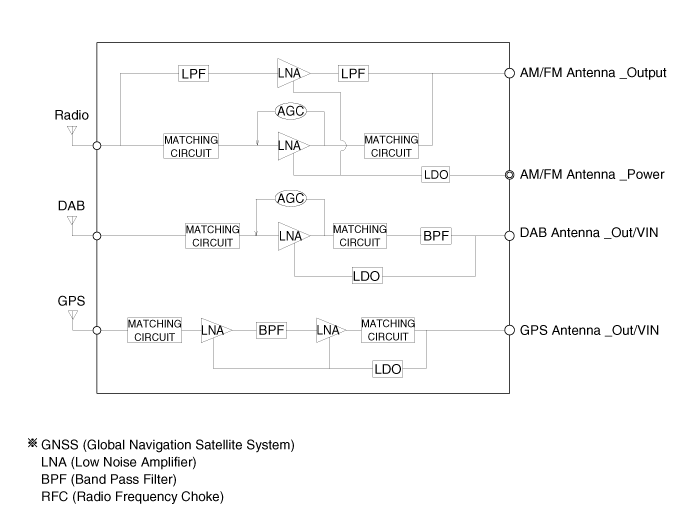 | [Антенна на крыше (радио + GPS + DAB)] |