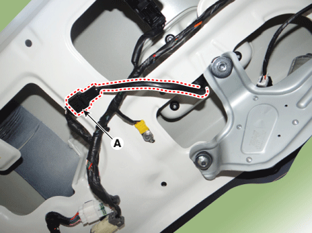 Отсоедините разъем наружной ручки двери багажного отделения (А).