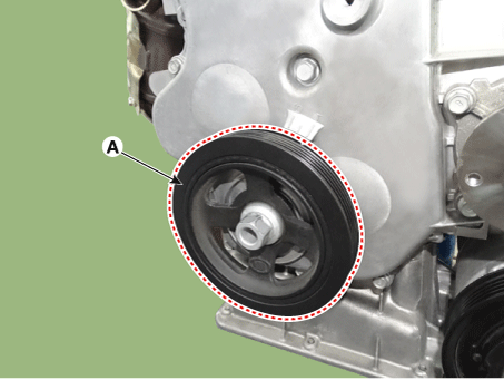 Проверьте демпферный шкив коленчатого вала на наличие вибрации при вращении, отложений масла или пыли. V-образной части. При необходимости замените.