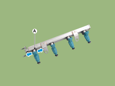Отсоедините разъем форсунки (А).