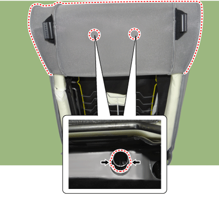 Снимите обивку спинки переднего сиденья (А) с рамы спинки переднего сиденья.