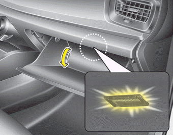 Лампа вещевого ящика загорается при открытии вещевого ящика. Во избежание ненужных