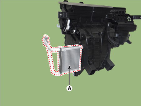 Снимите крышку радиатора отопителя (А) после ослабления крепежных винтов.