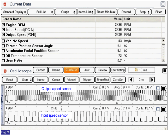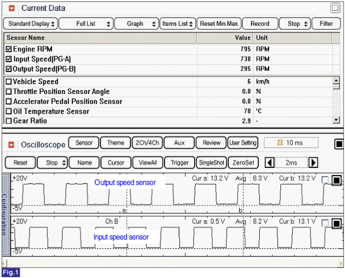 Проверьте форму сигнала датчика входной скорости с помощью KDS/GDS. |