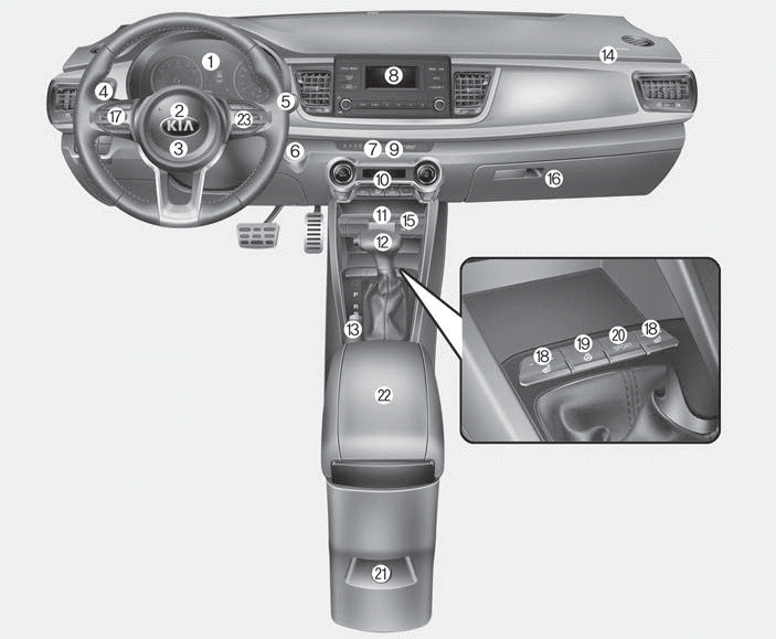 19. Переключатель обогрева рулевого колеса
