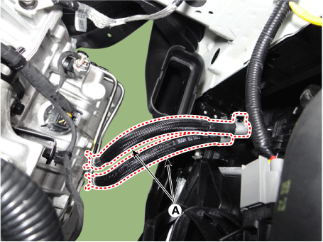 Отсоедините шланги охладителя ATF (А). (только автоматическая коробка передач)