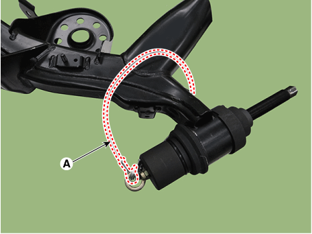 Подсоедините контровочную проволоку (А), намотав один раз вокруг оси торсионной балки.