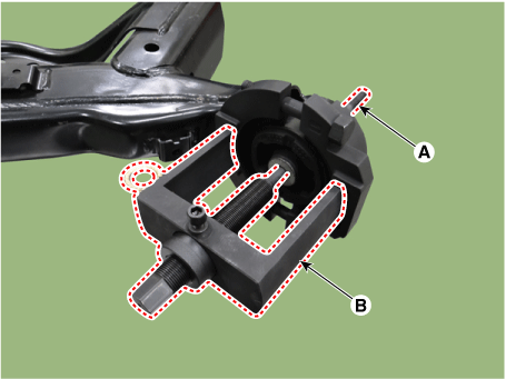 Установите новую втулку, совместив канавку втулки (А) и нижнюю часть (B) оси торсионной балки.