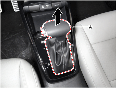 Снимите ручку (А), потянув ее в направлении стрелки после снятия пыльники от верхней крышки консоли.