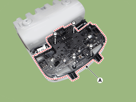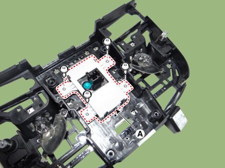 Откройте крышку футляра для солнцезащитных очков с потолочной консоли и снимите 2 винта, удерживающие потолочную консоль. Отсоедините разъем выключателя и Сопоставьте разъем лампы, а затем снимите лампу на потолочной консоли (A).