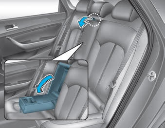 Подлокотник расположен в центре заднего сиденья. Потяните подлокотник вниз с помощью ремня от спинки сиденья, чтобы использовать его.