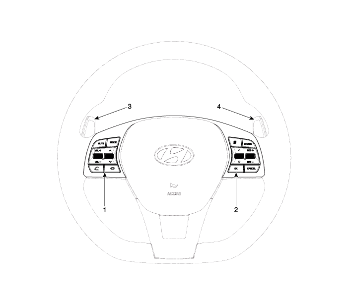 Hyundai Sonata LF 2014-2019 Руководство по ремонту / Электрическая система кузова / Аудио / Пульт дистанционного управления аудиосистемой (Sonata Sports) Компоненты и расположение компонентов