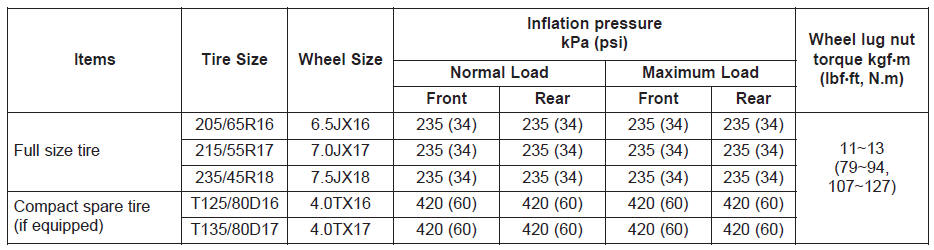 При замене шин используйте шины того же размера, что изначально поставлялись с автомобилем. Использование шин другого размера может привести к повреждению соответствующих деталей или неправильной работе.