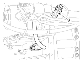 Отсоедините разъем датчика положения коленчатого вала (А) и снимите датчик (В), отвернув установочный болт.