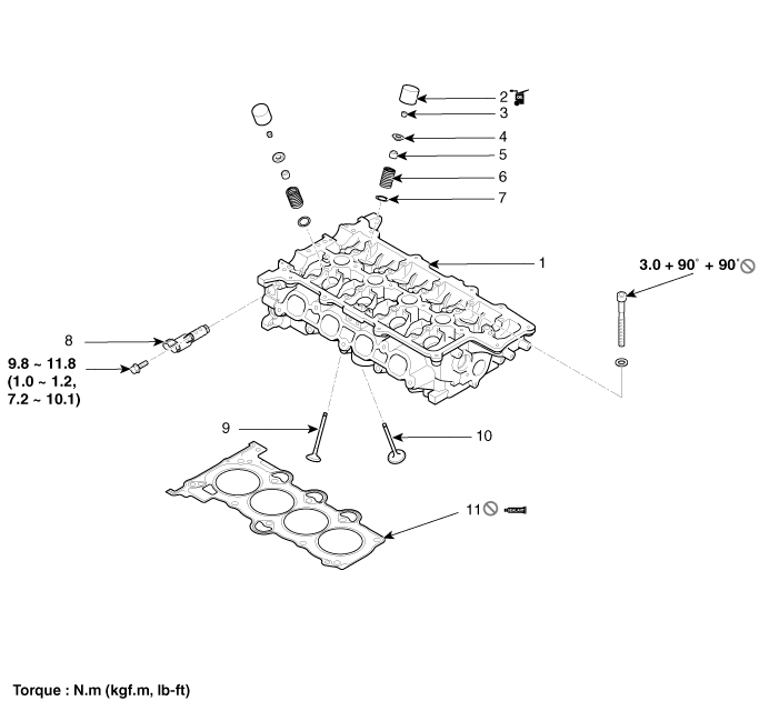 Hyundai Sonata: Головка блока цилиндров в сборе / Компоненты головки блока цилиндров и расположение компонентов