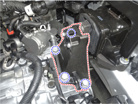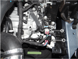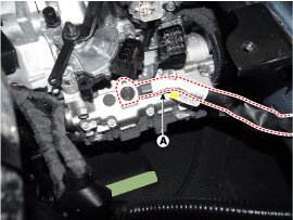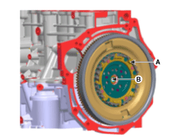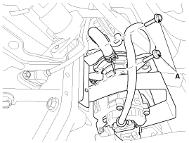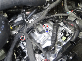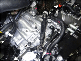 Ослабьте болты верхнего крепления коробки передач (A-2ea) и болт крепления стартера (B-1ea).