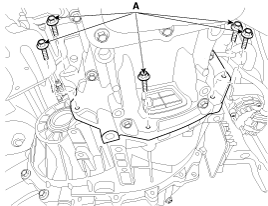 Снимите крышку монтажного кронштейна коробки передач с двойным сцеплением (А).