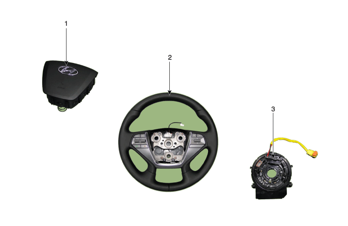 Hyundai Sonata LF 2014-2019 Руководство по ремонту / Сдержанность / Модуль подушки безопасности / Расположение компонентов и компонентов модуля подушки безопасности водителя (DAB) и часовой пружины