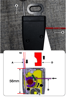 Ослабьте крепежный болт (В) и снимите натяжитель анкера.