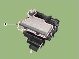 Снимите нижний крепежный зажим (А) блока отопителя.