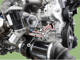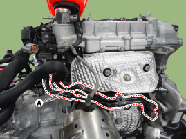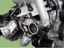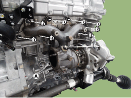 Снимите водяную трубу и шланг (А) турбонагнетателя.