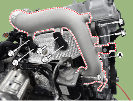 Снимите впускные шланги и трубку промежуточного охладителя (А).