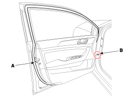 Отсоедините зажимы, затем снимите боковой уплотнитель передней двери (A).